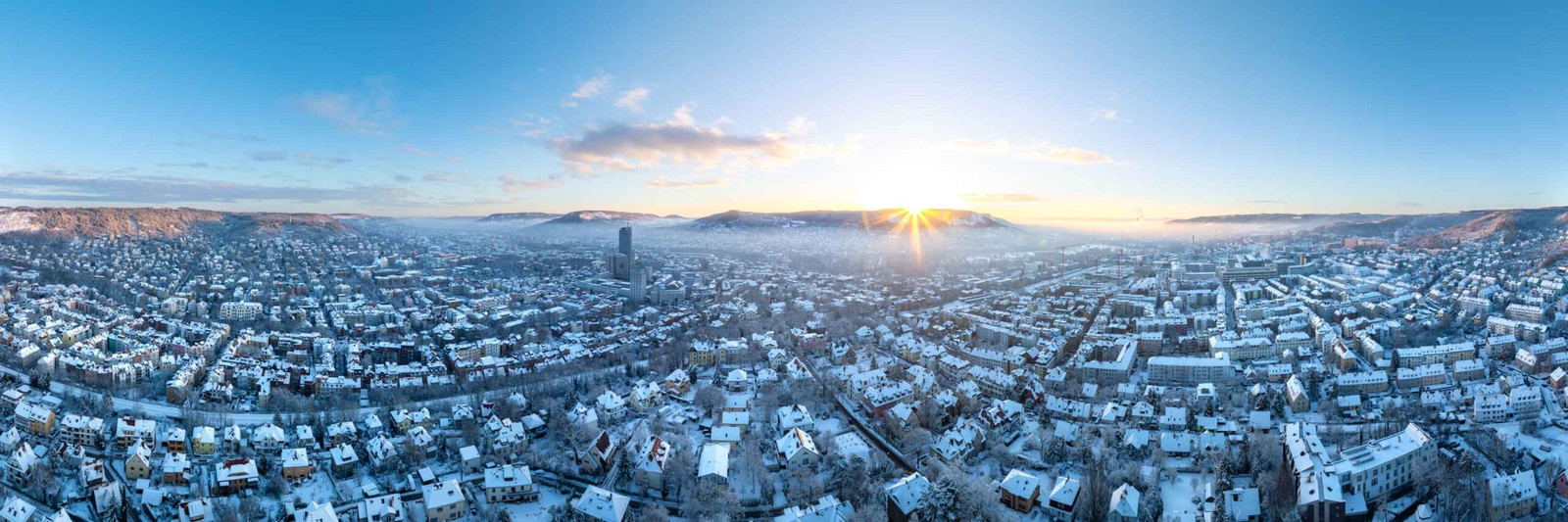 Winterzauber Jena vom Friedensberg zum Sonnenaufgang